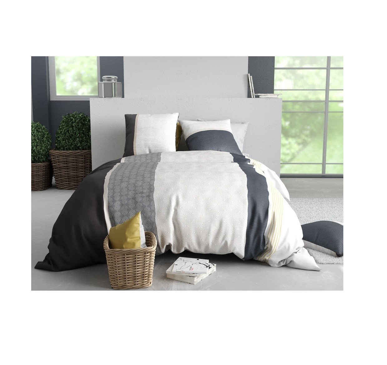 Donnez une allure moderne et élégante à votre chambre avec cette parure de lit aux larges bandes graphiques dans des tons neutres et intemporels (blanc, gris et anthracite).