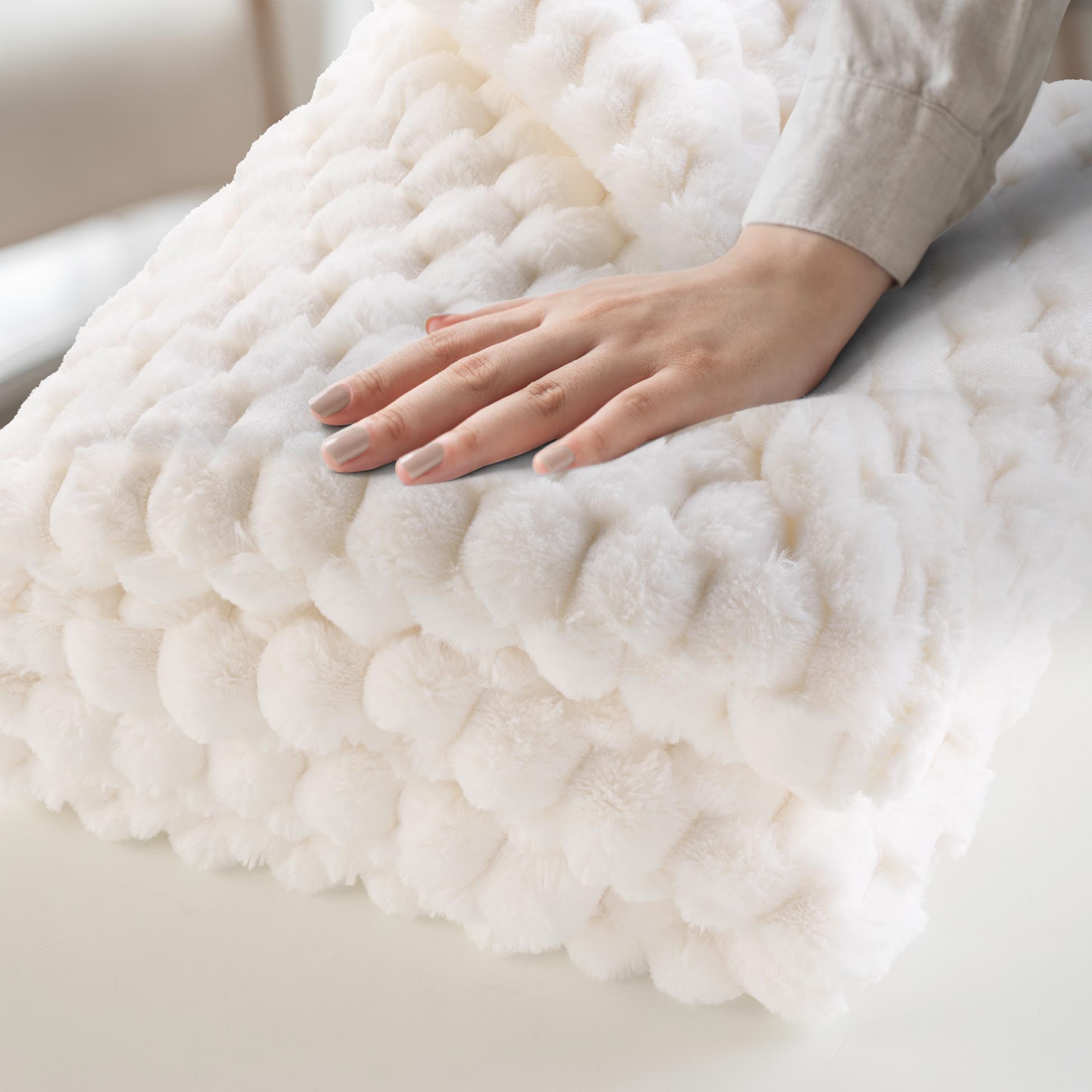 Enveloppez-vous de douceur avec le plaid Breetzy crème, un cocon moelleux et élégant pour des moments cocooning incomparables.