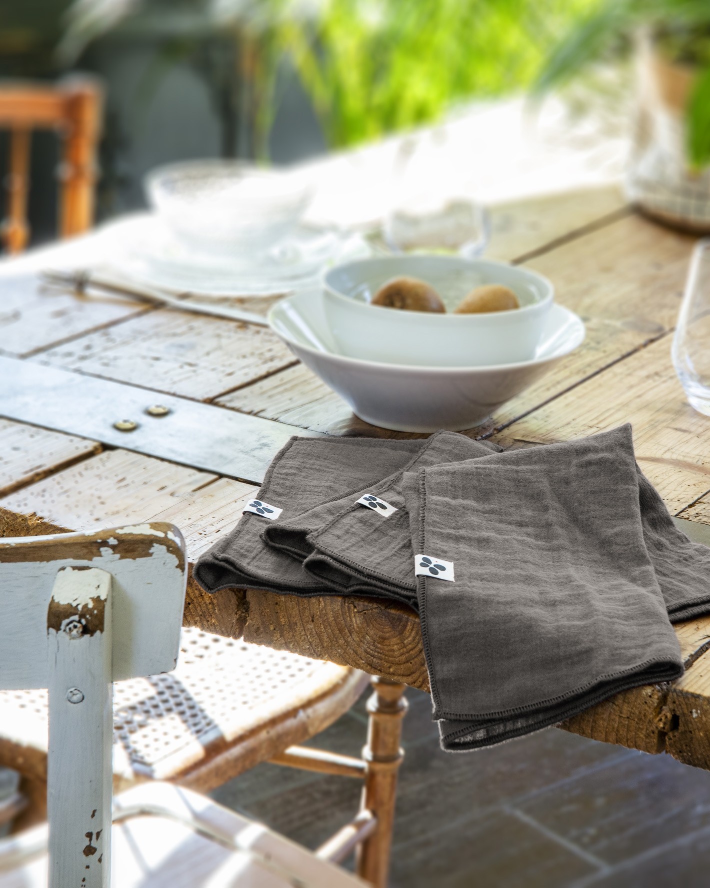 Apportez une touche d’élégance naturelle à votre table avec les serviettes Gaia en gaze de coton, douces, durables et certifiées OEKO-TEX.